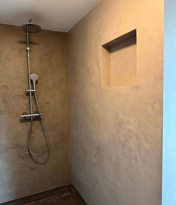 In Groningen hebben wij een complete badkamerrenovatie gerealiseerd met een uitgesproken en persoonlijk ontwerp. De klant had een duidelijke visie: een warme, natuurlijke uitstraling met aardse en beige tinten, gecombineerd met diverse hoogwaardige materialen. Een belangrijk onderdeel van dit project was het aanbrengen van Beton Ciré op de wanden, wat zorgt voor een naadloze, moderne afwerking met een zachte en natuurlijke uitstraling die perfect aansluit bij het totaalconcept.