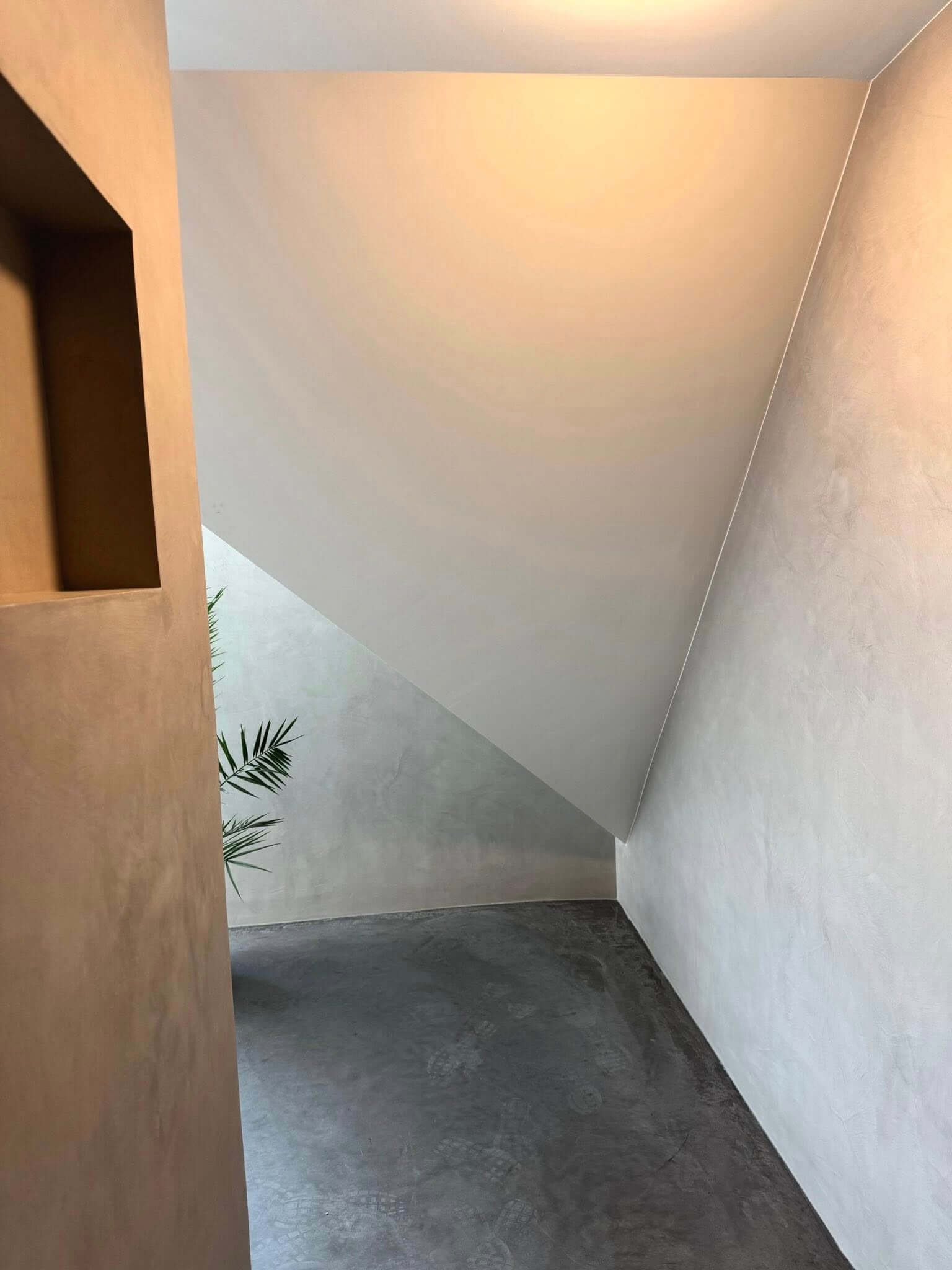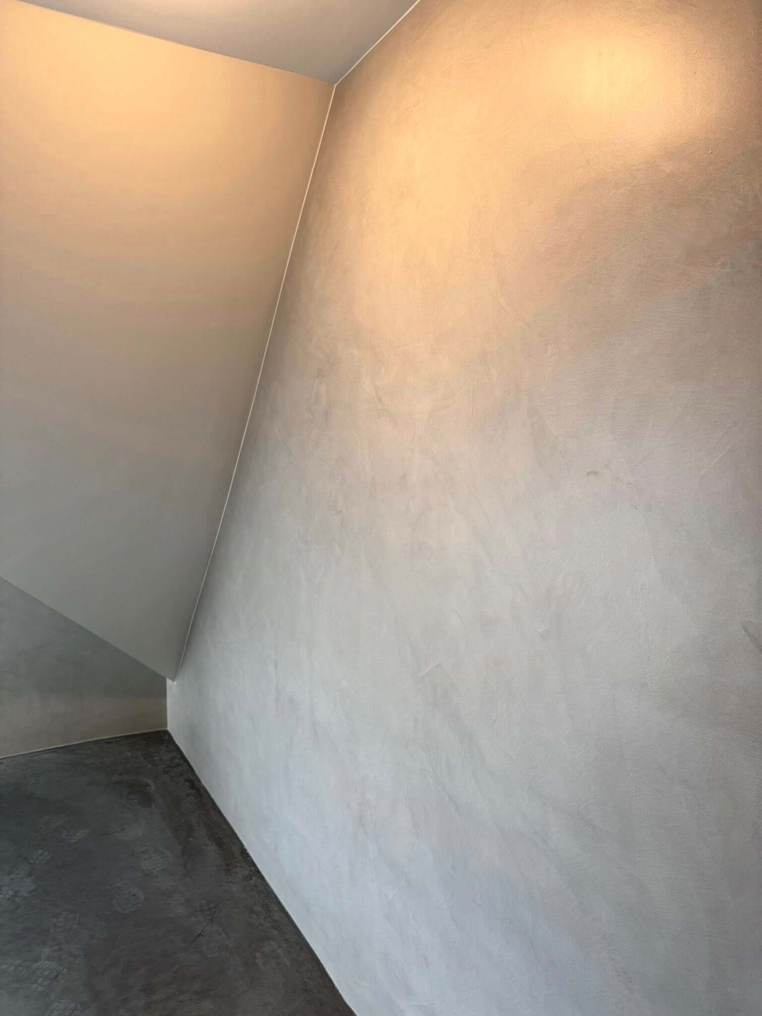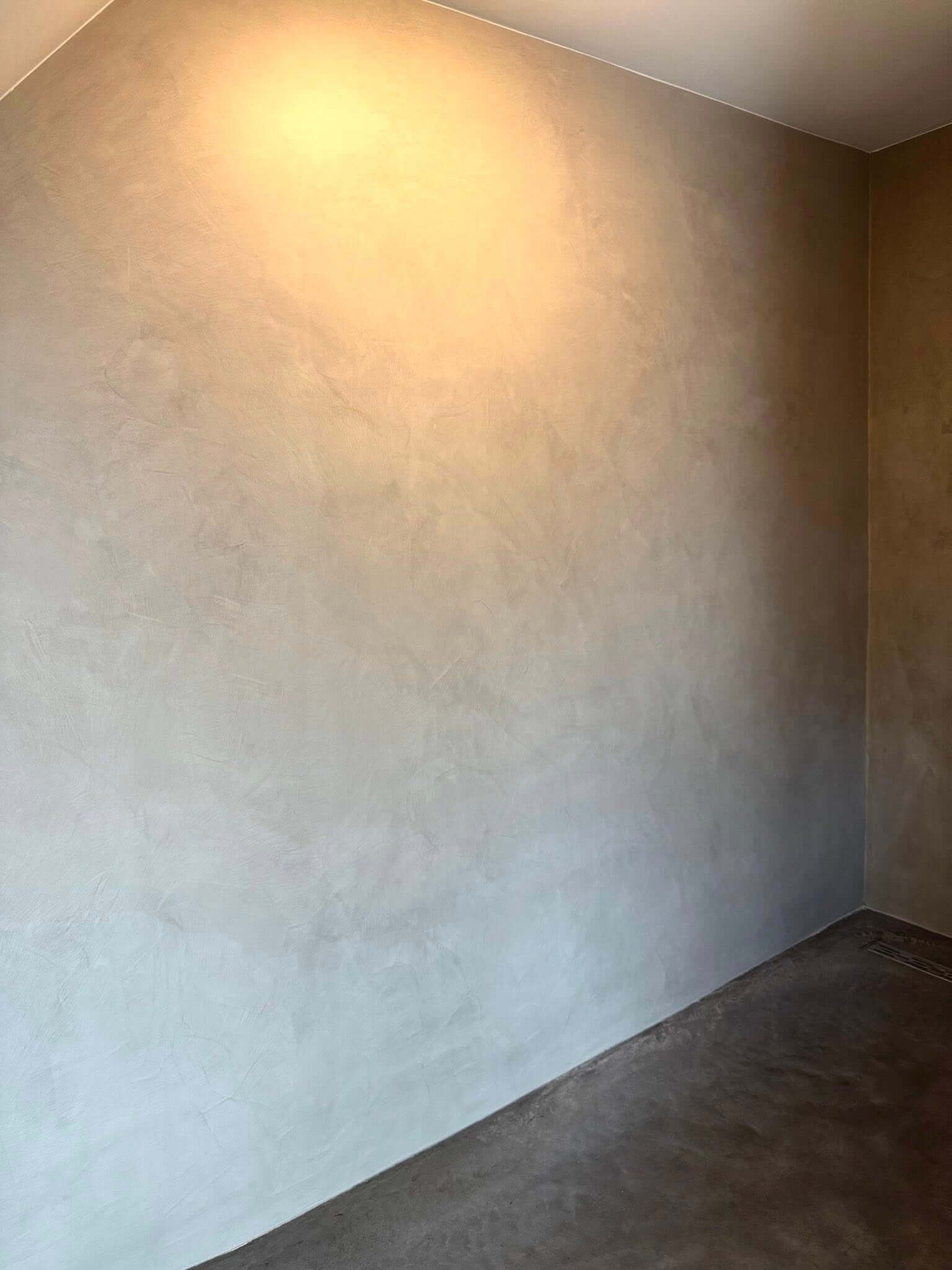 In Groningen hebben wij een complete badkamerrenovatie gerealiseerd met een uitgesproken en persoonlijk ontwerp. De klant had een duidelijke visie: een warme, natuurlijke uitstraling met aardse en beige tinten, gecombineerd met diverse hoogwaardige materialen. Een belangrijk onderdeel van dit project was het aanbrengen van Beton Ciré op de wanden, wat zorgt voor een naadloze, moderne afwerking met een zachte en natuurlijke uitstraling die perfect aansluit bij het totaalconcept.